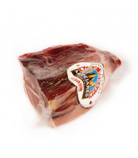 Maza de Jamón Bodega envasada al vacío con peso aproximado de 2,90 kg. Una opción ideal para aquellos que quieren disfrutar del jamón conservando todas las partes individualmente selladas hasta el momento de su apertura. Nuestro jamón de bodega se elabora en nuestras instalaciones situadas a 900 metros de altitud, llevamos a cabo un proceso de curación de mínimo 18 meses que le otorgan a nuestro jamón un aroma y sabor inconfundible.
